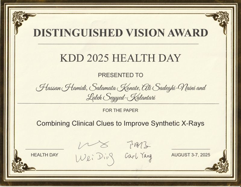 Dr. Seyyed-Kalantari received two 2025 York University Research Awards: the Outstanding Early Career Award and the Significant Knowledge Mobilization & Impact Award, April 2025.